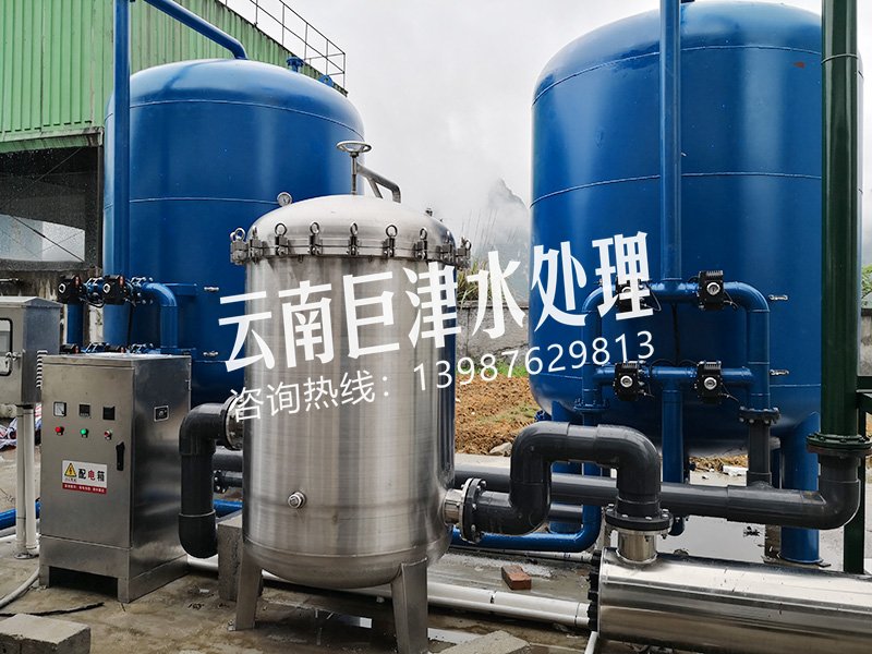 工藝流程:河水-絮凝沉淀-加藥消毒-變頻水泵-石英砂過濾器-精密過濾器-紫外線消毒