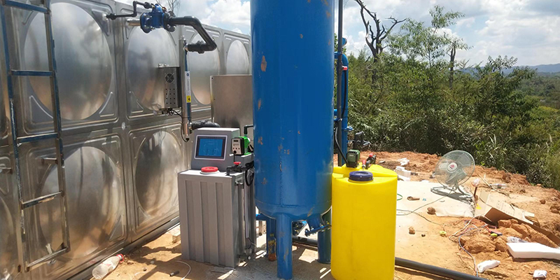 工藝流程:地下水-絮凝加藥-石英砂過濾器-二氧化氯消毒-水箱