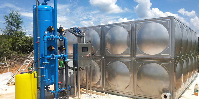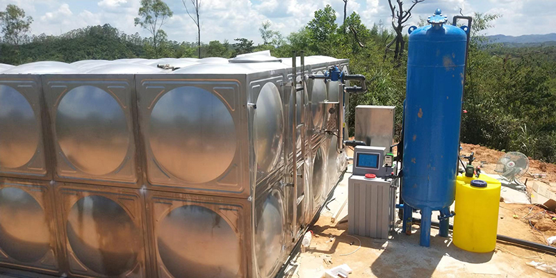 工藝流程:地下水-絮凝加藥-石英砂過濾器-二氧化氯消毒-水箱